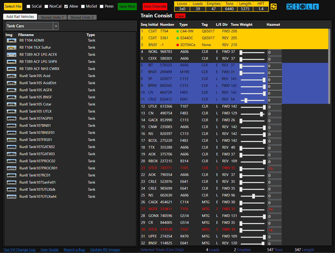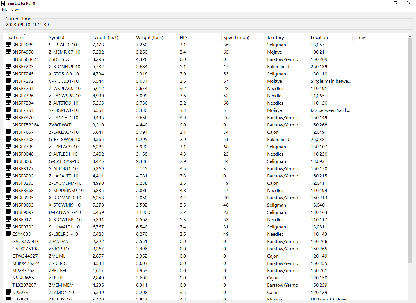 This tool works off the external dispatcher interface from Run8 and displays data about trains in the environment.